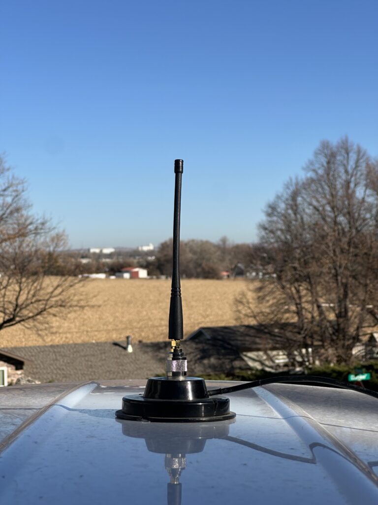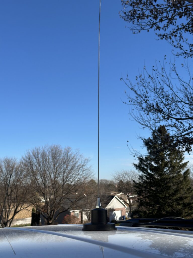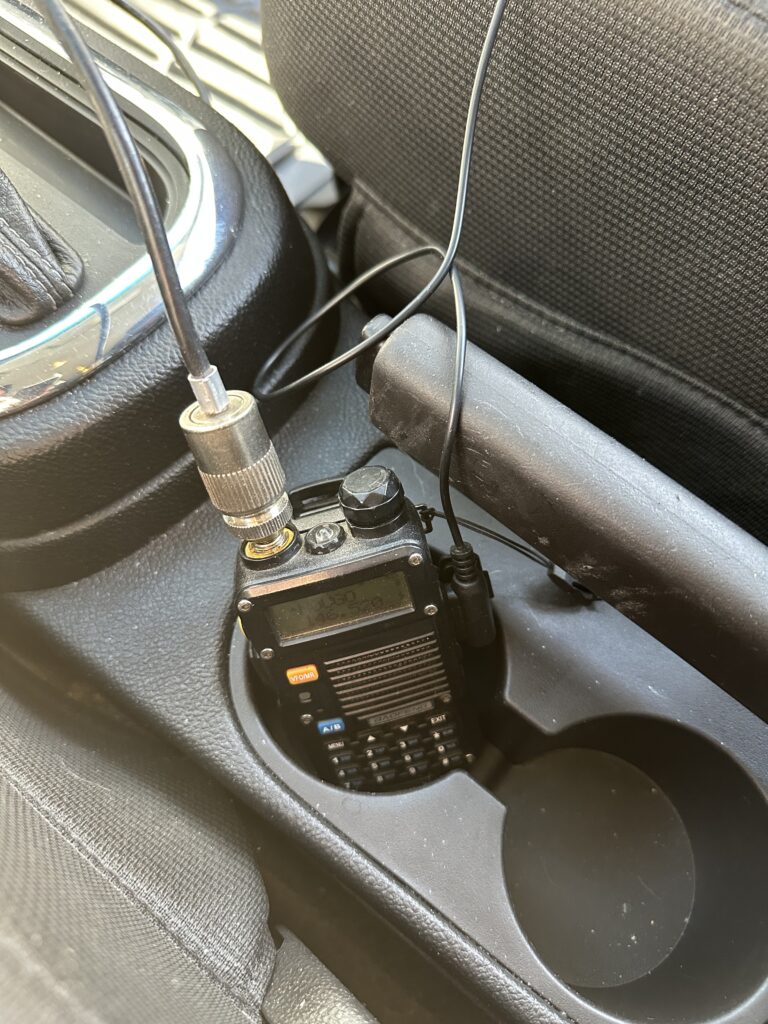 I decided I didn’t want to put an under dash/seat radio or drill holes in my car. I decided to use a cheap handheld radio with ear piece and lapel mic, coupled to a mag mount whip antenna with the coax cable fed through the door frame gasket. It worked great, but I had to lay the antenna down every time I parked in the garage.